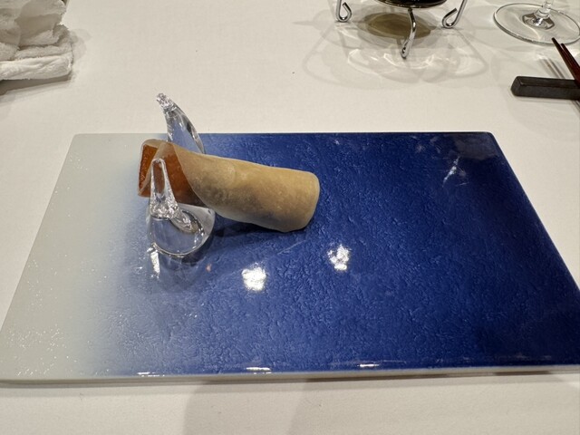まず印象に残ったのが 焼きフカヒレと虎フグの九条ネギあんかけ。