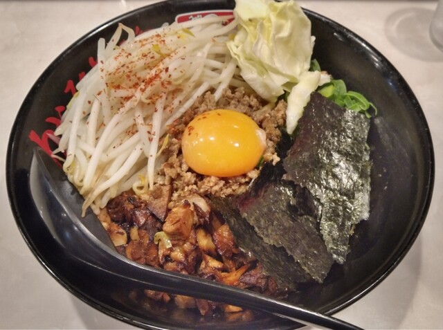まぜそば同様、麺を楽しんだ後は底に沈んだひき肉を掬い上げ、残った具材と共にライスをかき込むといいだろう。