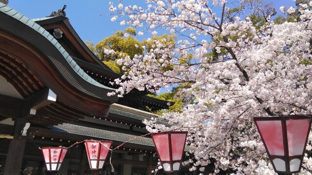 帰りに三嶋大社へ桜を見に行きました。満開です。