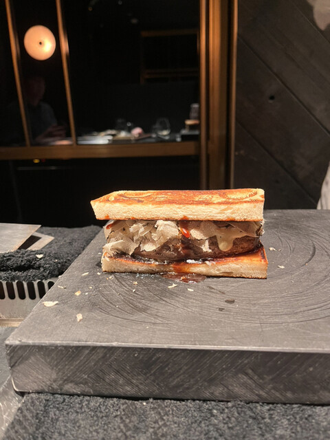 エシレバター、マヨネーズソース、特製照り焼きソースっていう3種の神器。肉汁溢れるレア目の但馬玄バーグとのハーモニーがたまらない!