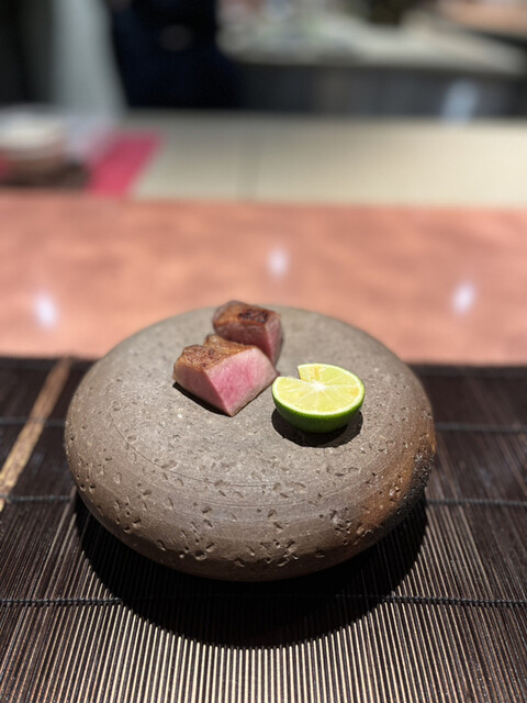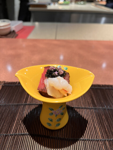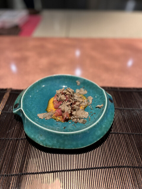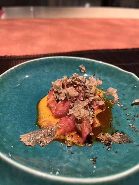 ◼︎あいなめと牛テール 和牛と鮪出汁ふくさ仕立て