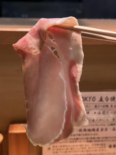 真空低温調理された豚肩ロースチャーシューはしっとりとしていて柔らかく最高!!