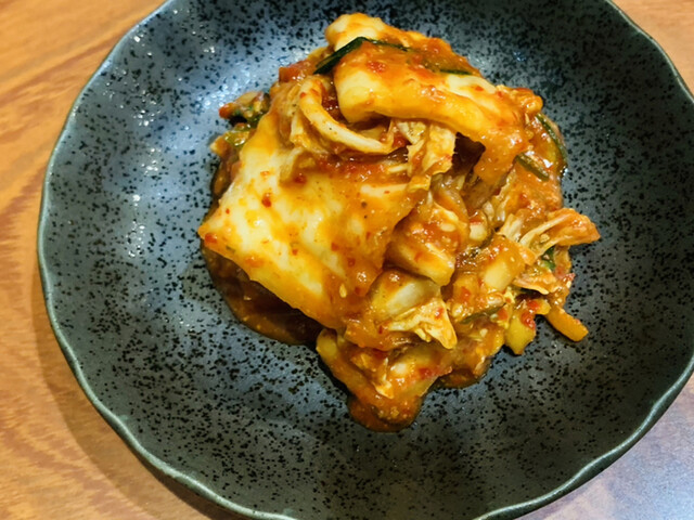 キムチ、せんまいさし、ミノ刺し、ユッケ、レバー、