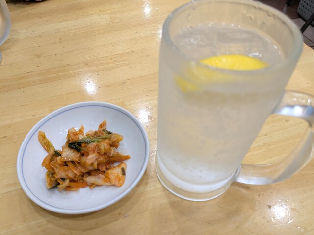 夏が終わると、満州ではこのかた焼きそばの季節です。期間限定メニューですが、ぜひグランドメニューに入れて欲しいといつも思います。お店で揚げたばかりの、口の中に刺さりそうなパリパリの麺が香ばしくてたまりません。あんも塩加減がちょうどよくて、スーパーチューハイで流し込むのが最高です。だんだんあんが染みて、味が変化してくるのもいいですね。食べられるうちに食べましょう。かた焼きそば+餃子+キムチ+スーパーチューハイできっちりと決まりました。