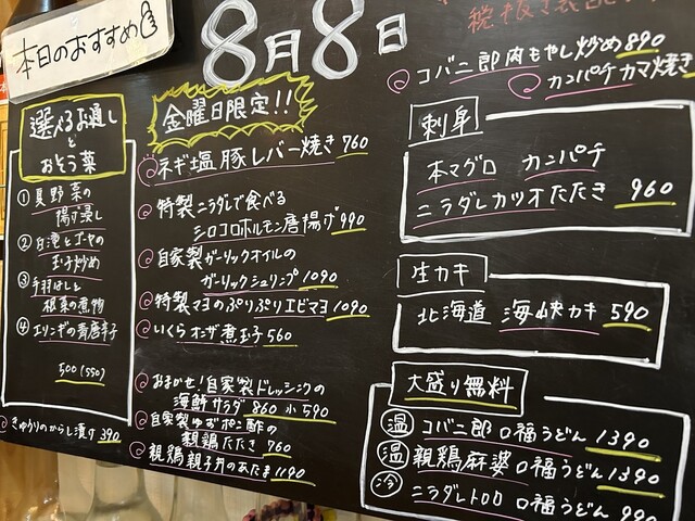 仕事帰りの金曜に気になっていたお店にアポなしで突入します。店構えは間口が狭くお祭りの屋台のようで、中はカウンターのみのスタンド形式。奥に予約用の座敷があるようですが、基本はこの駅そばのようでもあり、角打ちのようでもある不思議な空間です。実際、立ち飲みしている客もいました。また、店長のコバさんと料理人、ホール2名は動きにまったく無駄がなく実に小気味よく料理が出てきます。これは案外すごいことなのです。冷蔵庫内の整理整頓や日本酒の一升瓶も1杯注ぐごとに真空栓でエア抜きをする管理の徹底ぶり。こんなお店の料理が美味しくないはずがありません・・・ でもってお味の方は美味しくて泣けました。しかもどれもおいしい。隠れた名店と言われているだけあります。