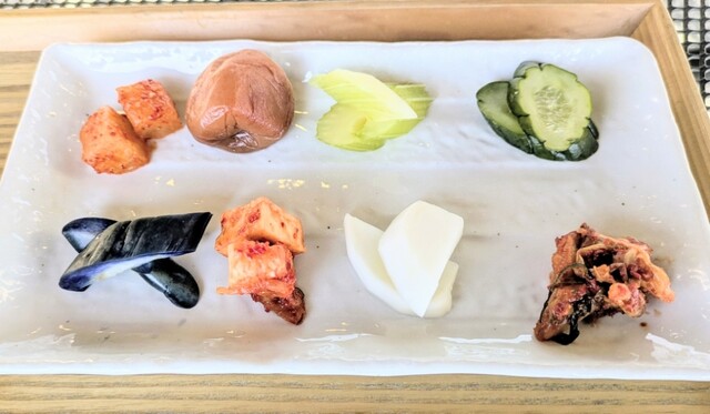 発酵食品のテーマパーク的な存在、OH!!!~飯能の中にある小さなお店です。ここで売られている様々なお漬物を一口ずつ、これまた発酵させた熟成玄米ご飯でいただきます。塩に至るまで素材はすべて国産というこだわりようで、だし汁で茶漬け風にもでき秀逸です。この美味しい漬物ご飯が500円です… 具だくさんのアツアツ豚汁400円をつけてもよいところ。これはほどシンプルなのに、これを超えるおいしいごはんにはなかなか出会うことがないという、食の本質を感じさせてくれるコーナーです。甘さがまるでない酸っぱい梅漬も懐かしい味です。このセットをいただくためだけに飯能まで行く価値のあるご飯です。