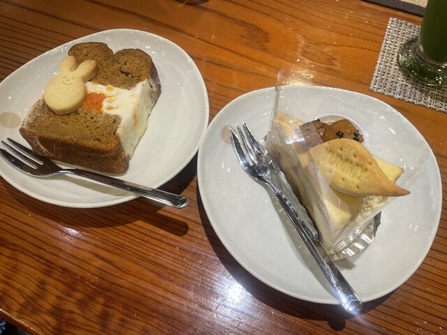 パンプキンキャラメルカスタードミルクレープタルトと紅茶スカッシュをイートインで、他ケーキとパンと焼き菓子をテイクアウトで。