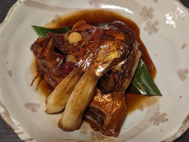 次いで金目の煮付け。ホロホロで濃いめの味付け。これは絶品の煮付けかと。ほか、煮穴子やホタテ磯辺など、どれも非常に旨い。そして〆に地魚の握りをいただく。