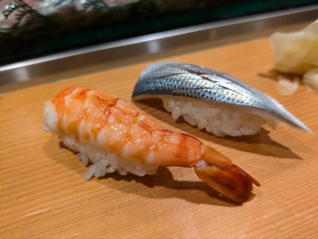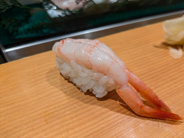 ブリは腹の良いところで、クセのない脂乗りはいくらでもいけそうなもの。エビはきちんと仕込まれたブラック。歯ごたえと甘酢のあんばいがほどよくこちらも旨い。甘エビは2L〜3Lほどの大きいサイズ。鮮甘よりもこの手の甘の方が甘みとコクが強いので個人的には嬉しいところ。