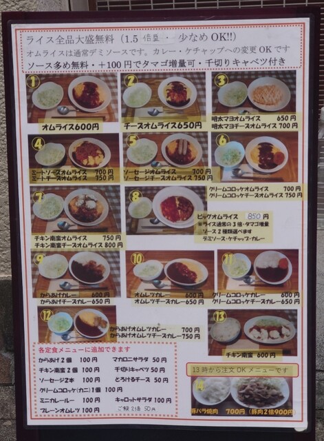 “キッチン ハレヤ”で、ソーセージオムライス(サラダ付)”¥700税込をlunchにチョイス。