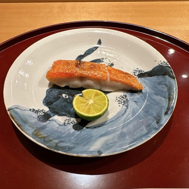 ◎そら豆の天麩羅、炙ったバチコ、餅米が