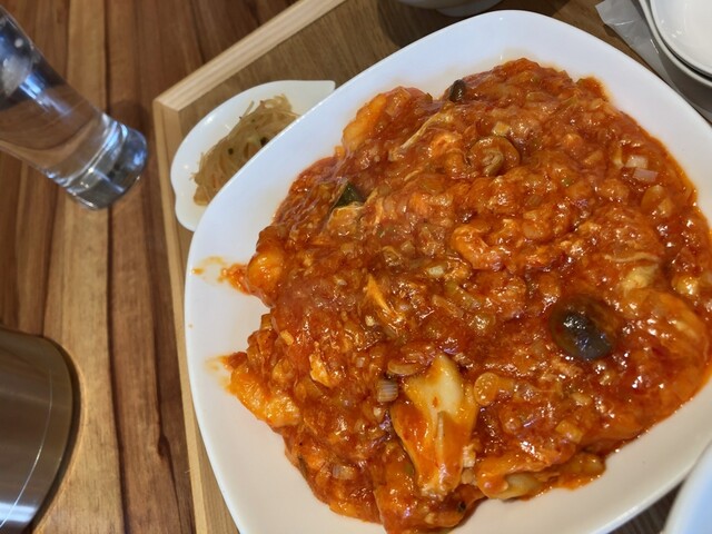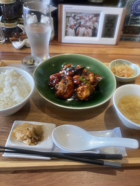 アクセントにオクラが入ってて良い食感。おまけで黒酢鶏も少し頂いちゃいました。お肉柔らか熱々うまい