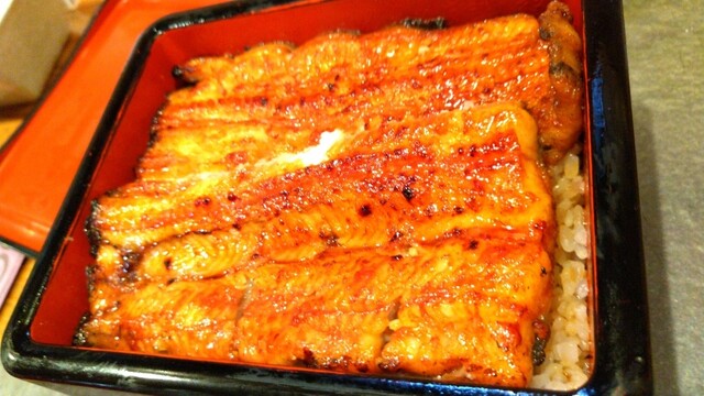 息子が少食であまり食べないので、一人前頼むのは止めてタレご飯(小)を注文。しかし、気を使ってくれたのか、出てきたのは大盛りw鰻重の蒲焼きを少し取り分けてミニ鰻丼の完成です。
