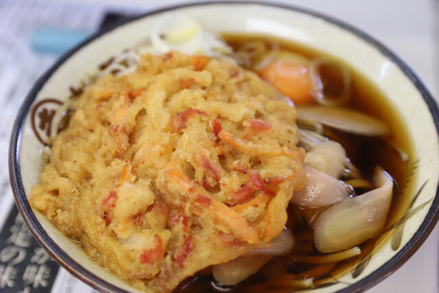 今日も今日とて天ぷら蕎麦に生卵トッピング、いわゆる天玉、450円