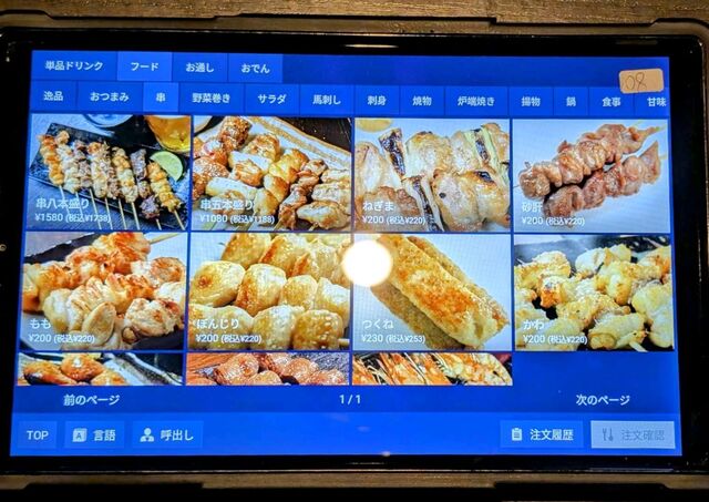 タッチパネルで好きな料理を頼みましょう。