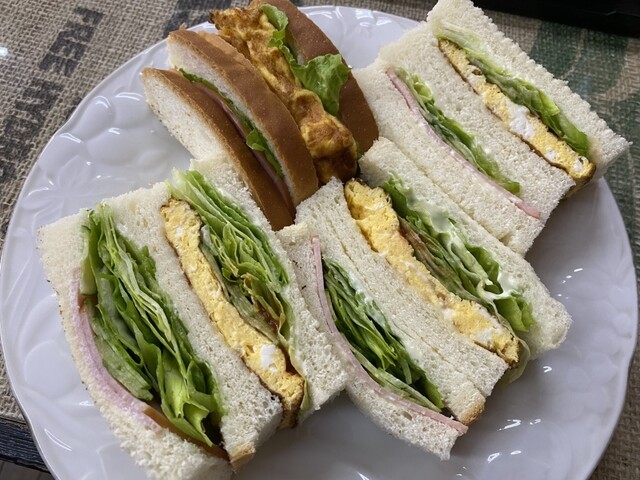 パンは本間パン。8枚切りくらいの厚さでこちらもフワッフワ。ほんのり甘い。