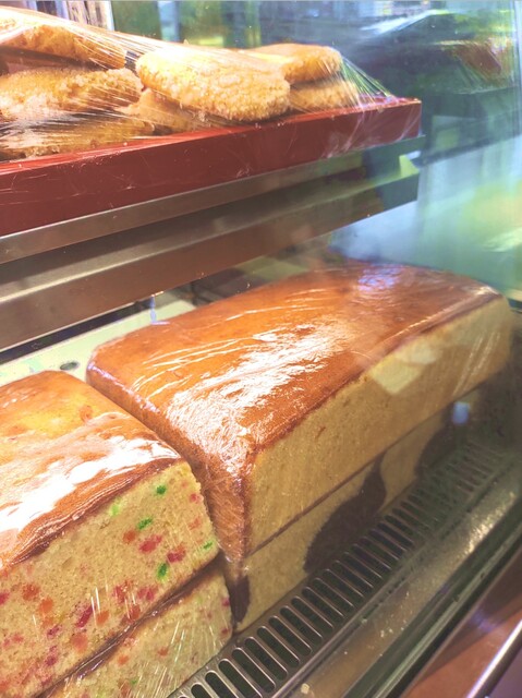 巨大なカステラのようなケーキ。食べると、バニラが効いたしっかりもっちり食感のカステラって感じ。店員さんに言えば好きなサイズにカット売りしてくれます。