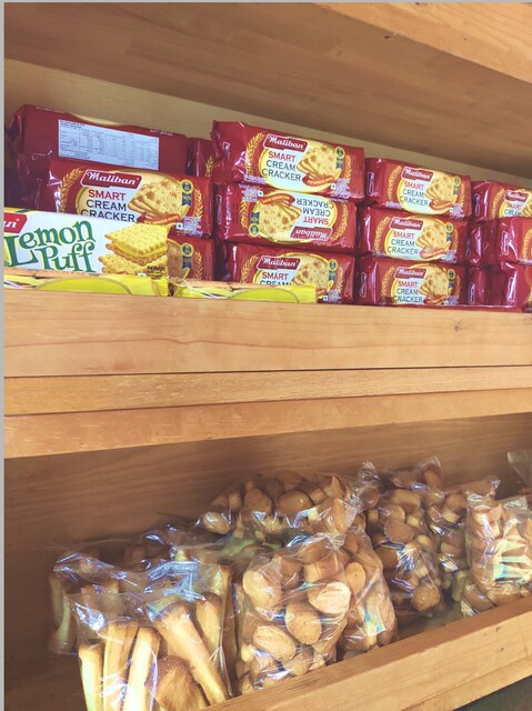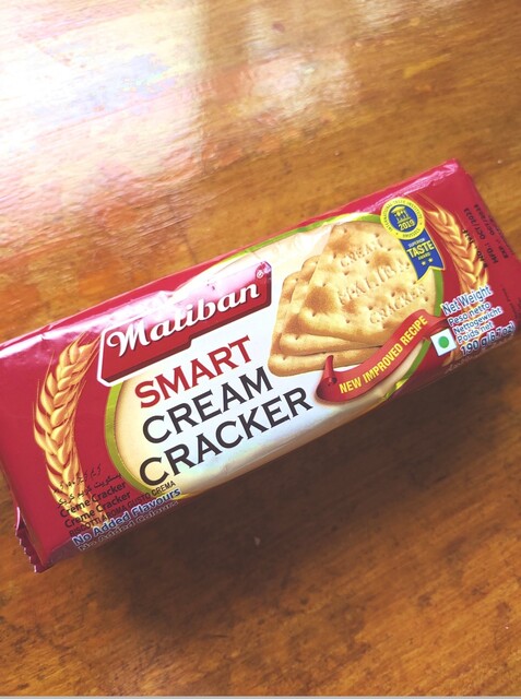 棚の上の方に、赤いパッケージのシンプルプレーンクラッカー。レモンクリームクラッカーはレモン風味がしっかり効いてた。