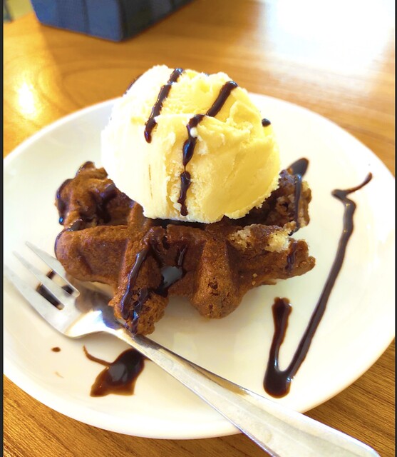 温かいワッフルにアイスクリームが乗っていてうまい。