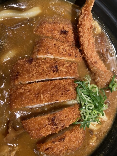 カレー三昧は、カレーが少し甘くて絶品。カツもしっかりとしたロースカツで、サックサク。牛すじは柔らかく煮込まれていて、こちらも大変美味しい。