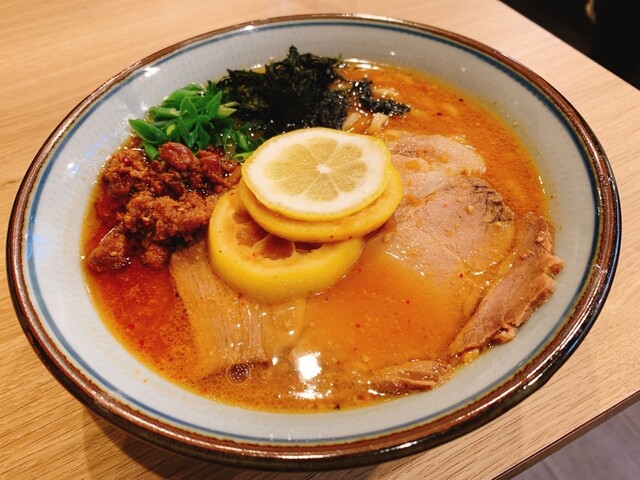 野菜やチャーシュー、フライドオニオンのバランスも良く、流石の一杯といったところ。