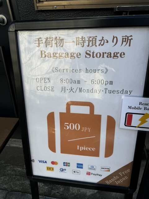 外国人観光客が多い通りで、荷物一時預かりやチャージスポットのような充電器も置いてありました!