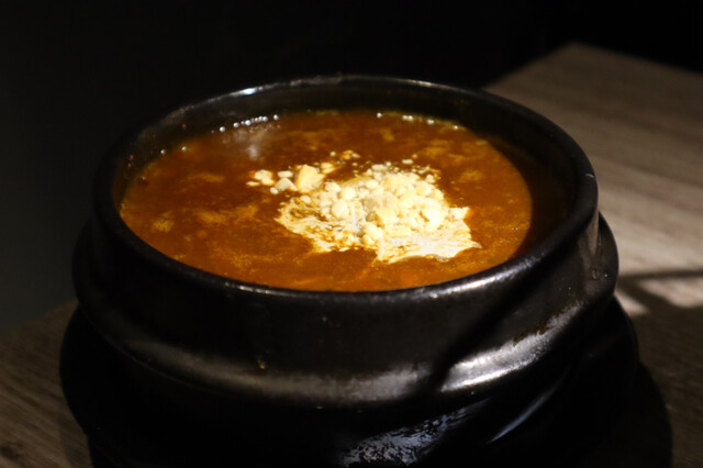 歯応えのあるお肉がゴロゴロ入った旨み深みコクが凝縮されたカレー。中には生卵も入っていて、食べているうちに少しずつ火が通り、まろやかさもあります。期待値を軽々と超えるメニューでカレー好きの方は必ずオーダーして欲しいです。