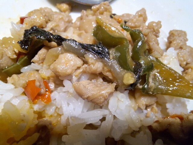 バジル香るガパオガイ。ライスはタイ米。