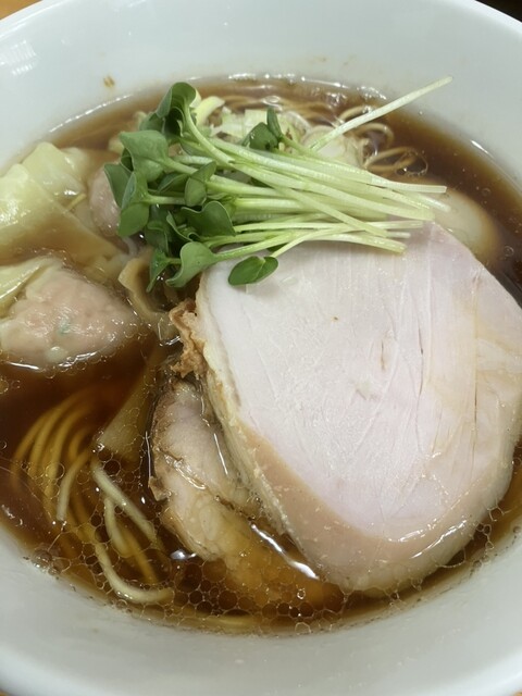 魚介の香りとしっかり醤油の中華そば、ついついスープを啜りたくなります。何より細めのしっかり麺とスープのバランスが絶妙です、かいわれを一緒に食べた時の味もまた良い。焼豚も食べごたえがあり、満足の一杯です。ご馳走様でした。