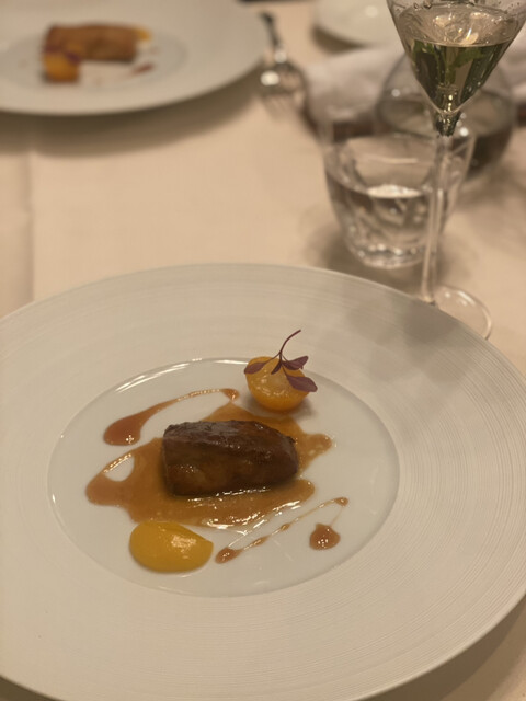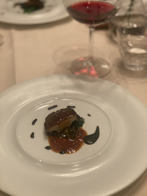 前菜は春を感じられる盛り付けが綺麗でした。生ハムがのったケークサレがお気に入りでした。さらにお気に入りが、蛤のフリット!甘さが凝縮されていてとっても美味しかったです。フォアグラと金柑のソースも合う!