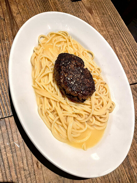 ・パスタの上に乗ったハンバーグの解体から始まる