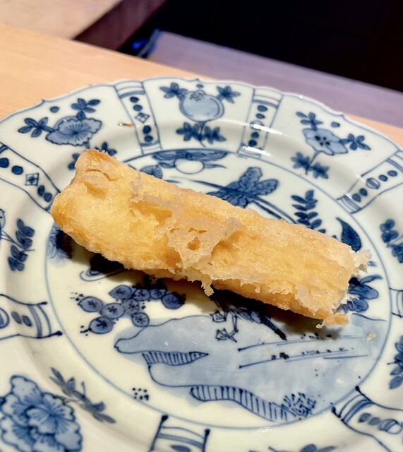 鯵やカサゴ、白甘鯛に蛤、巨大な赤座海老とサスエ前田魚店の地物の食材のレベルの高さもありますが、火入れが完璧でとても旨かったです。こんな肉厚な魚の天ぷらは他で食べた事無いですね!