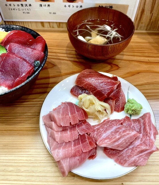 マグロが3段重ねくらいになってご飯が出てこないので取皿を貰って刺身は取り分けわさび醤油で頂きました。