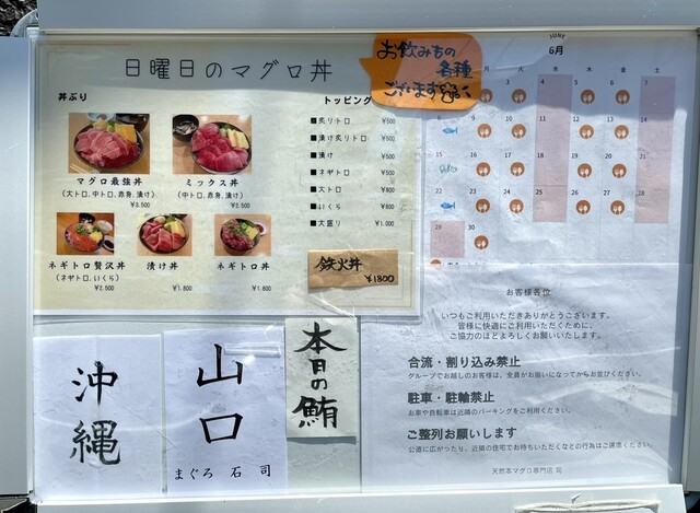 平日は定食ですが、日曜は不定期にマグロ丼を提供。Instagramでスケジュールを確認するとその日は開催の予定で、直ぐに出発。
