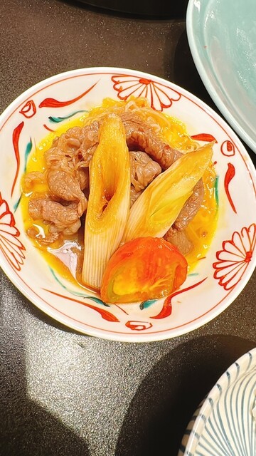 運ばれてきた和牛は見事なサシが入った美しいお肉。スタッフさんが最初に丁寧にしゃぶしゃぶしてくださるので、火入れの加減も完璧。口に入れた瞬間、脂の甘みと赤身の旨みが溶け合い、さっと煮るだけでここまで違うのかと感動しました。ゴマだれは濃厚でナッツの香ばしさがあり、ポン酢は柑橘が効いてさっぱり。どちらで食べても美味しく、飽きることなく食べ進められます。