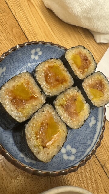 サイズ感ちょうどよくて、ネギトロの脂とたくあんの食感が最高。みんな好きなやつ。