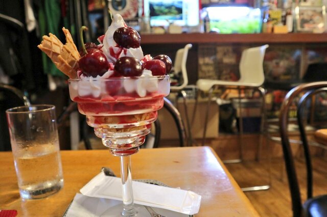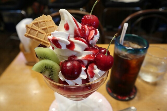 スーパーにはまだまだアメリカンチェリー並んでるので旬を過ぎてはいないようですが、新しい季節パフェ考え中とのことなのでいつまで食べられるか・・・