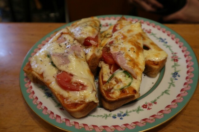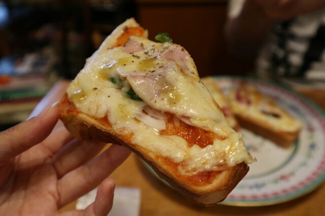 パフェ食べてしばらくしたら小腹が空いたのでピザトーストを初めて頼んでみました(`・ω・´)