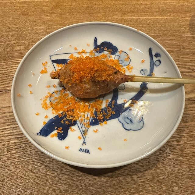 つくねといえば定番の卵黄ですが、こちらのお店では卵黄の塩漬けを削ったものがまぶされています。