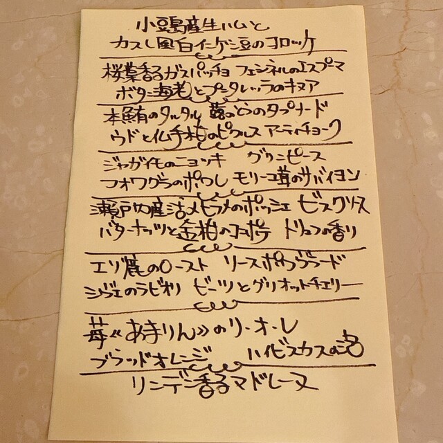 シェフの仕事の丁寧さと、心のこもったサービスもとても印象に残り、お料理、サービス、ワイン、どれをとっても抜かりのない素晴らしさ、でも堅苦しくなく、リラックスして過ごせる、稀有なお店でした。