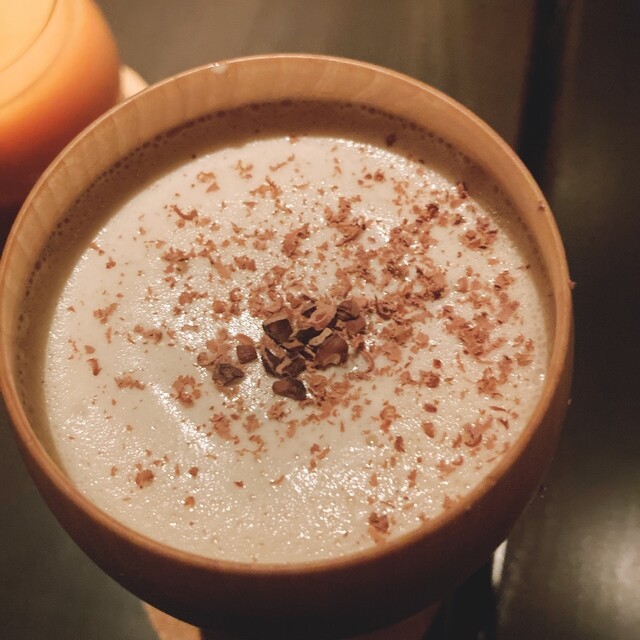 これは、自分の好みにドンピシャできた、ガツンとした甘さのカクテルです。少しとろ〜りとしたテクスチャで、甘さがとても濃厚!上にはさつまいもチップスが一欠片乗っておりこれがまたアクセントになりました。