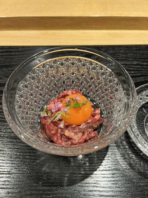 シンシンのユッケは、栗山の卵が加わることで一層のコクが生まれ、噛むほどに旨味が広がる仕上がり。思わず食べ続けたくなるような、中毒性のある味わいでした。