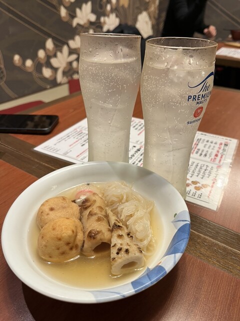 まず驚いたのは、お通しがまさかの“おでん食べ放題”。