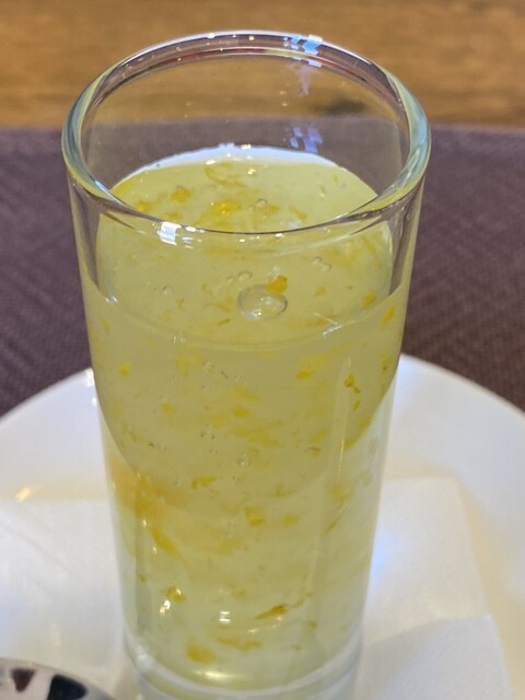 ゆずのジュレ:アバンデセールが初めての経験。デザートの前菜かな。柚子の香りイイですね。