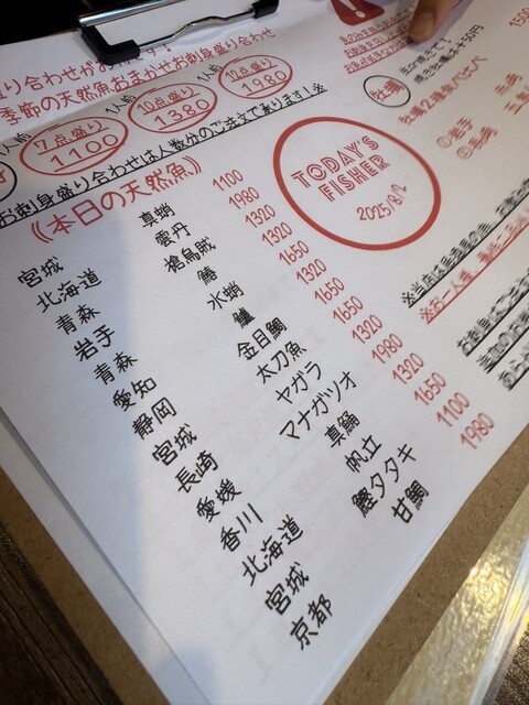 メニューには魚しかありません。魚好きには堪らないお店です。全体的にお安いように思えます。近頃、居酒屋で飲み会やると大して美味しくもない料理とビール、サワーで5000円取られます。今日はこんなに美味しいお料理とお酒で5000円/人でした。とても良心的なお店です。店員の方も笑顔で接客してくれました。ありがとうございます。また来ます。