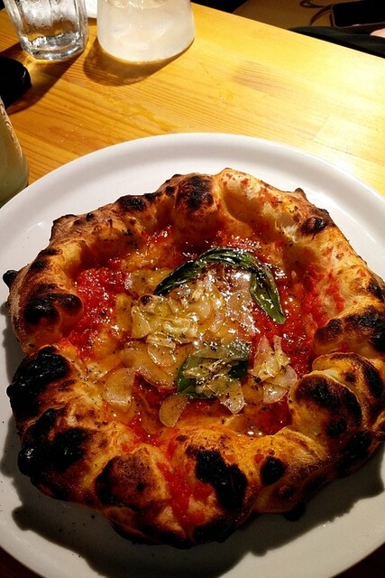 美味しいピッツァが無性に食べたくなり、ブラータさんへお邪魔しました。入口すぐの席につき、グラスワインともずくのペペロンチーノ、ピッツァは、マリナーラを注文しました。もずくのペペロンチーノとワインは、相性抜群。ピッツァマリナーラは、フチまで美味しく、たまらない~っ。旨さが際立ち至福の時間を堪能しました。ブラータさん御馳走様でしたぁ