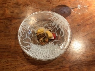 まずは伝助穴子のマリネ風と雲丹で、
