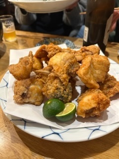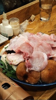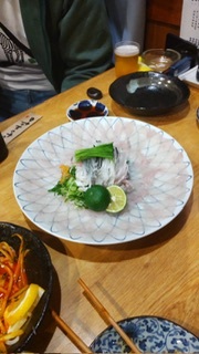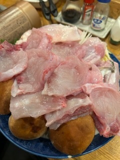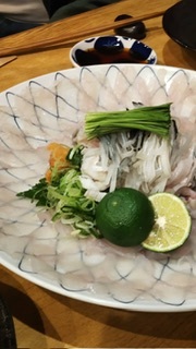 てっさ、フグの唐揚げ、焼きフグ、雑炊と