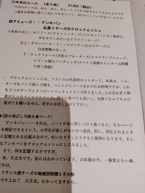 ストーリーがあり、ちゃんとオチがあって落語みたいなフレンチです。