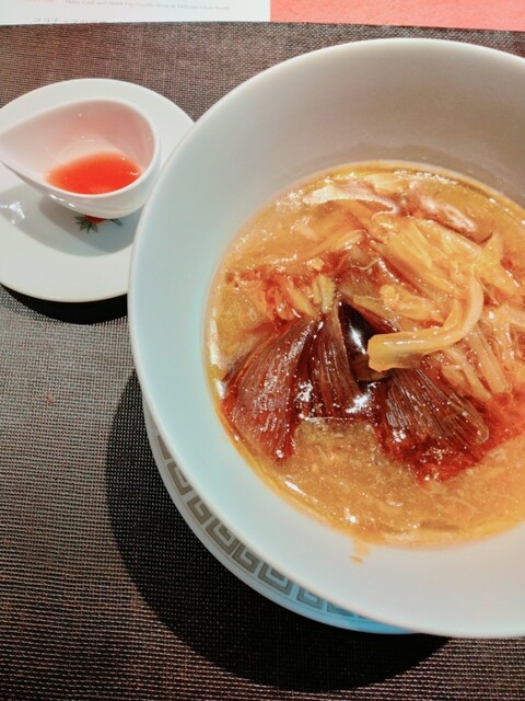 アワビとトリュフのご飯に巨大なフカヒレ。
